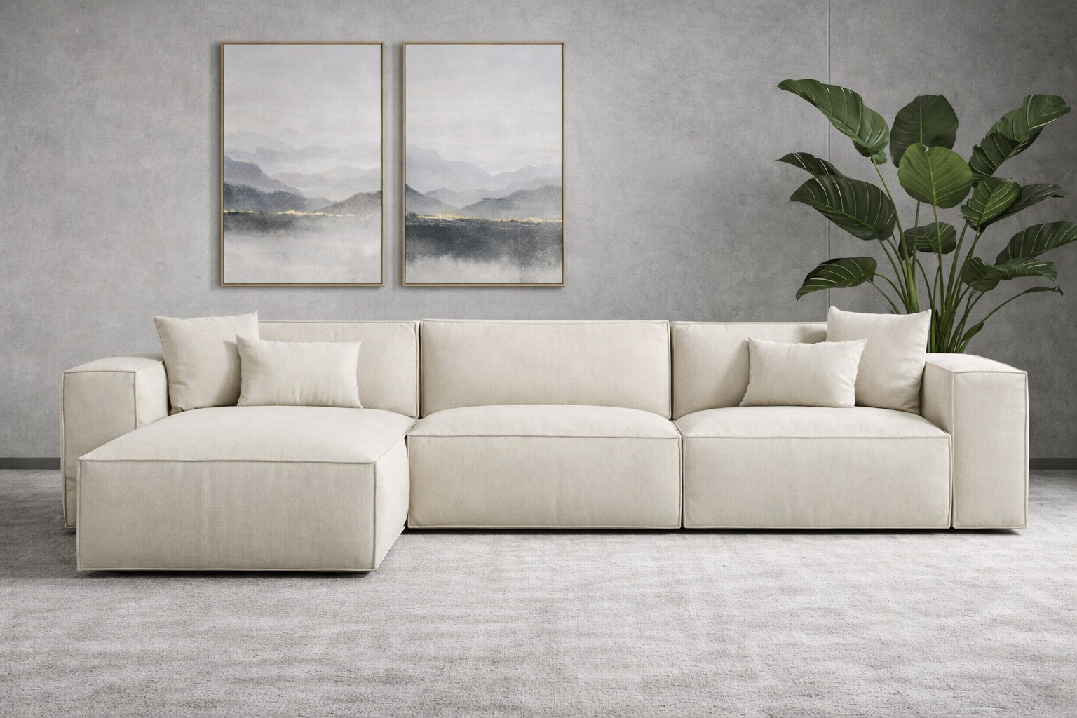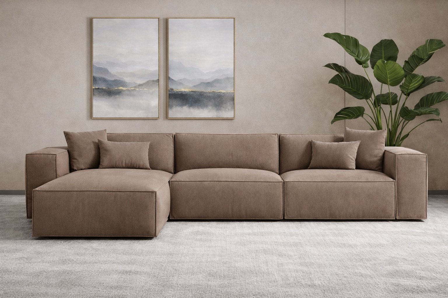 The Noah L Shape Sofa is a contemporary, stylish sectional designed to offer both comfort and aesthetic appeal.